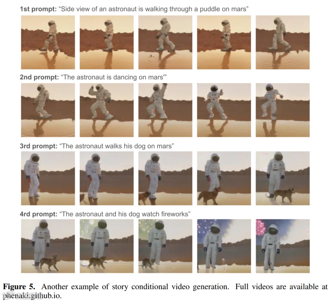 2、根据一个故事(即一系列 prompt)生成视频,如下图 1 和图 5 所示: