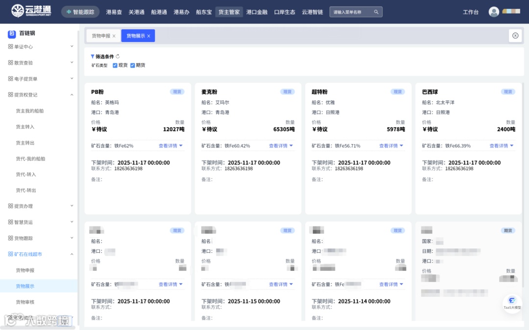 贸易商则可发布铁矿销售信息,方便客户在线询价、促成交易。