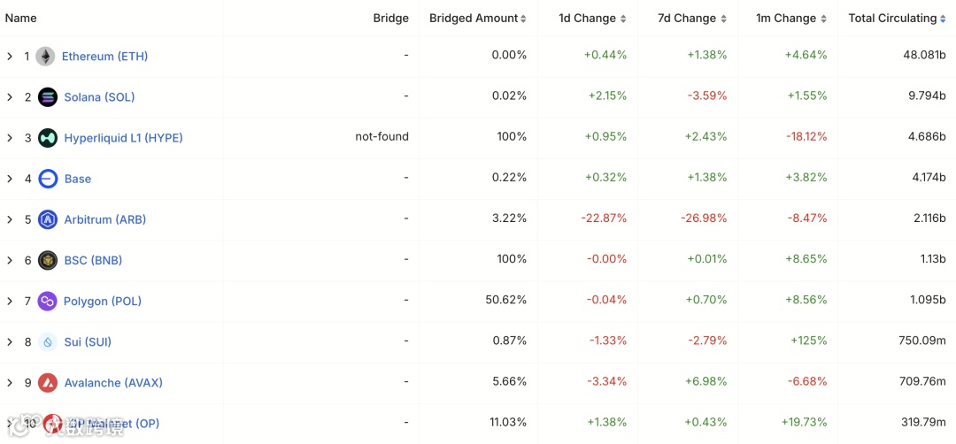 近30天USDT在 ARB、AVAX 链出现较为显著的增幅,分别为26%、42%,主要由链上 defi 需求导致。