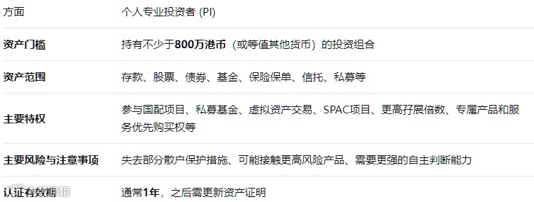 "港股PI用户"指的是在香港金融市场中被认证为"专业投资者"(Professional Investor,简称PI) 的个人或机构投资者。要获得这个身份,主要看你的投资“实力”——也就是金融资产的规模。这张表能帮你快速了解PI用户的核心信息: