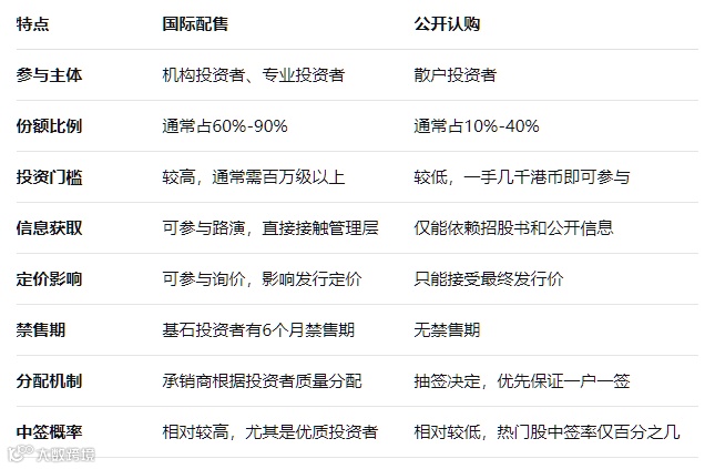 为了更清晰地展示国际配售与公开认购的区别,我们通过以下表格对比两者的特点: