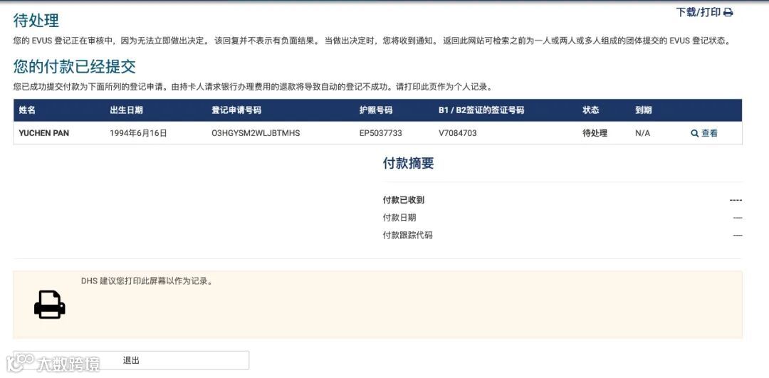 在网站:https://www.evus.gov/,从全球导航菜单中或 EVUS 主页上选择“检查 EVUS 状态”和“检查个人状态”。输入以下信息: