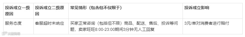 淘宝商家:每成立单投诉赔付3元。