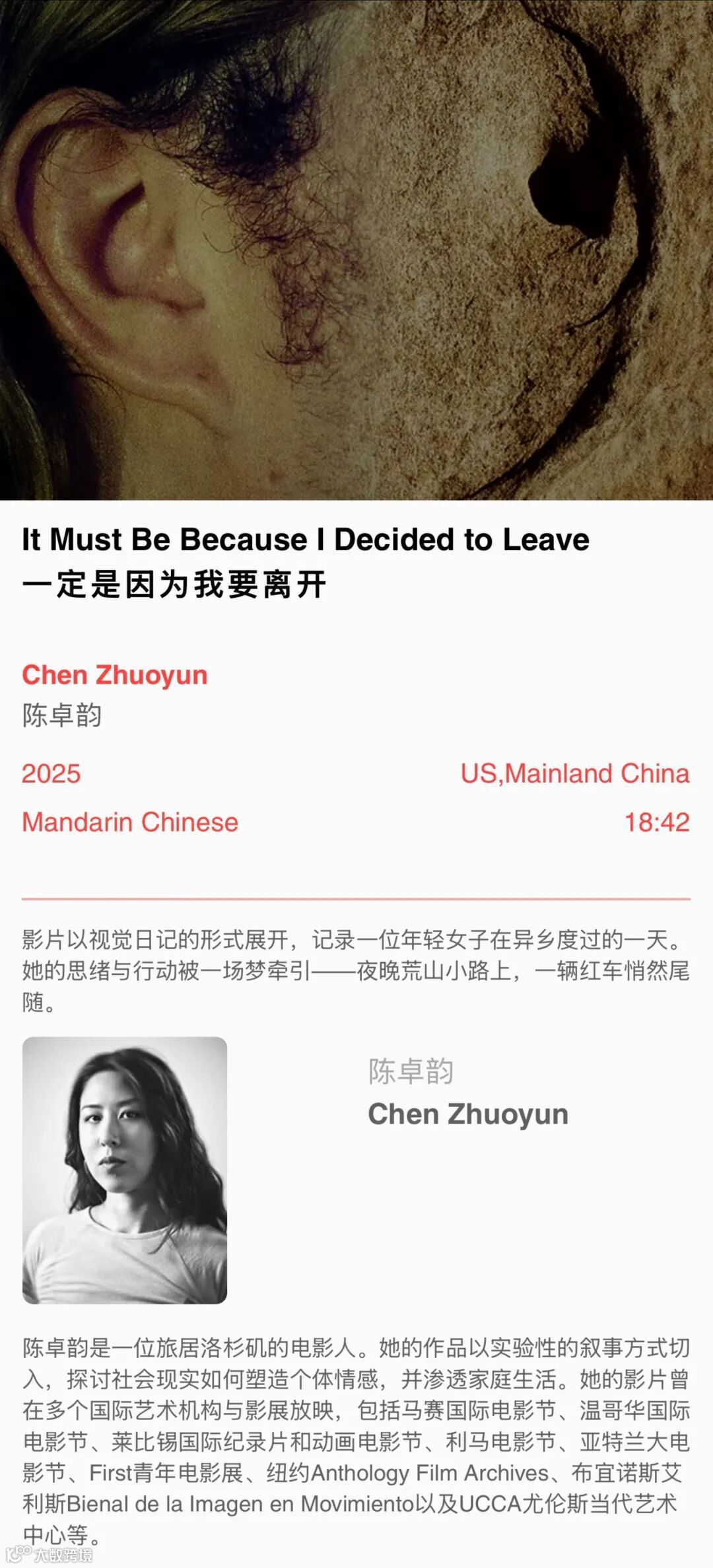 BISFF坚持做一个“低效率”的异质空间,我们相信,真正的影像实验不在技术前沿,而在感知边缘;不在创新口号里,而在观看关系的重构中。这些短片像一组光学镜像,通过它们,我们不仅看到华语影像的当下光谱,更看到在语言、记忆与技术交叠处,那些正在生成的情感结构与社会想象。