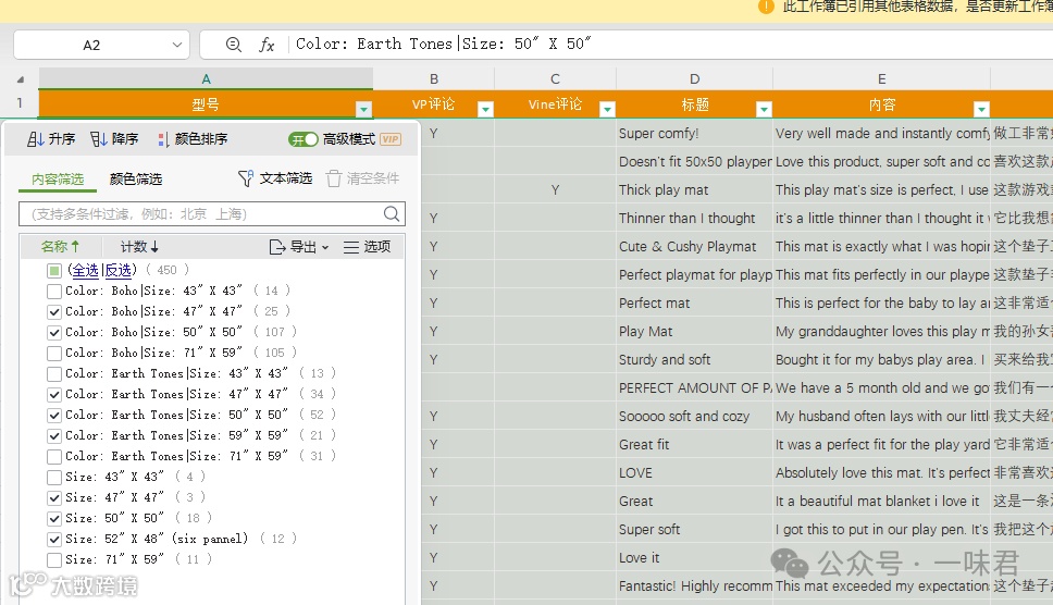 对于多属性产品,需先筛选出目标属性的评论;单ASIN则无需此步骤[k]。