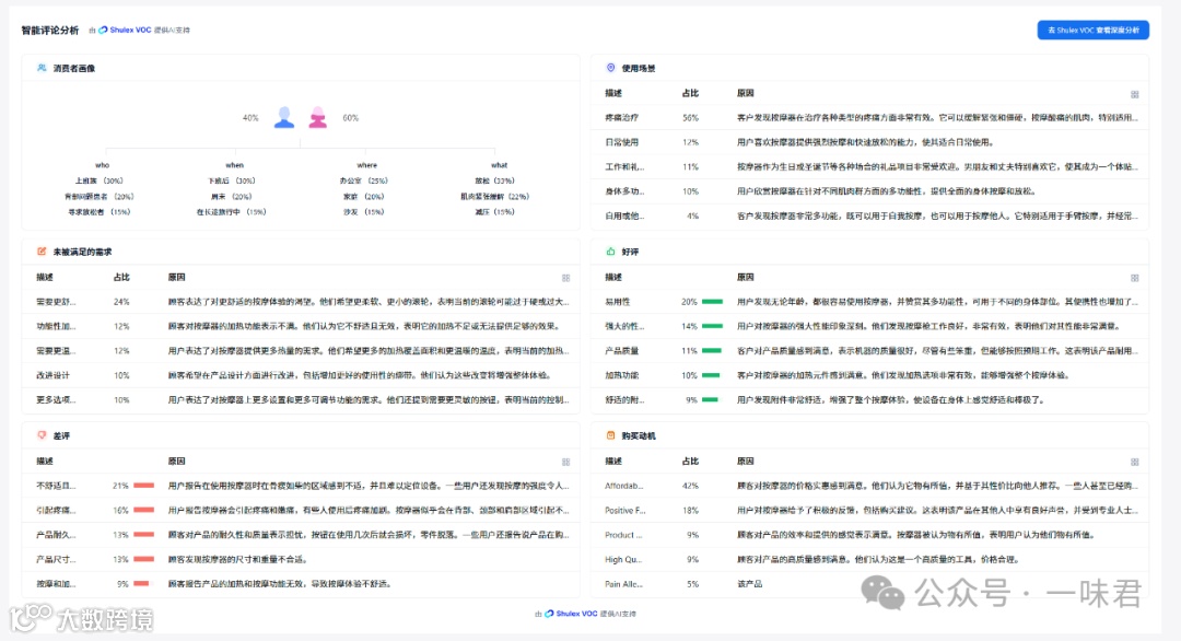 尽管AI分析功能强大,但无法理解消费者情感与语境。因此,仅依赖AI结论并不足够。建议结合人工阅读,深入分析评论中的情感表达与真实体验[k]。