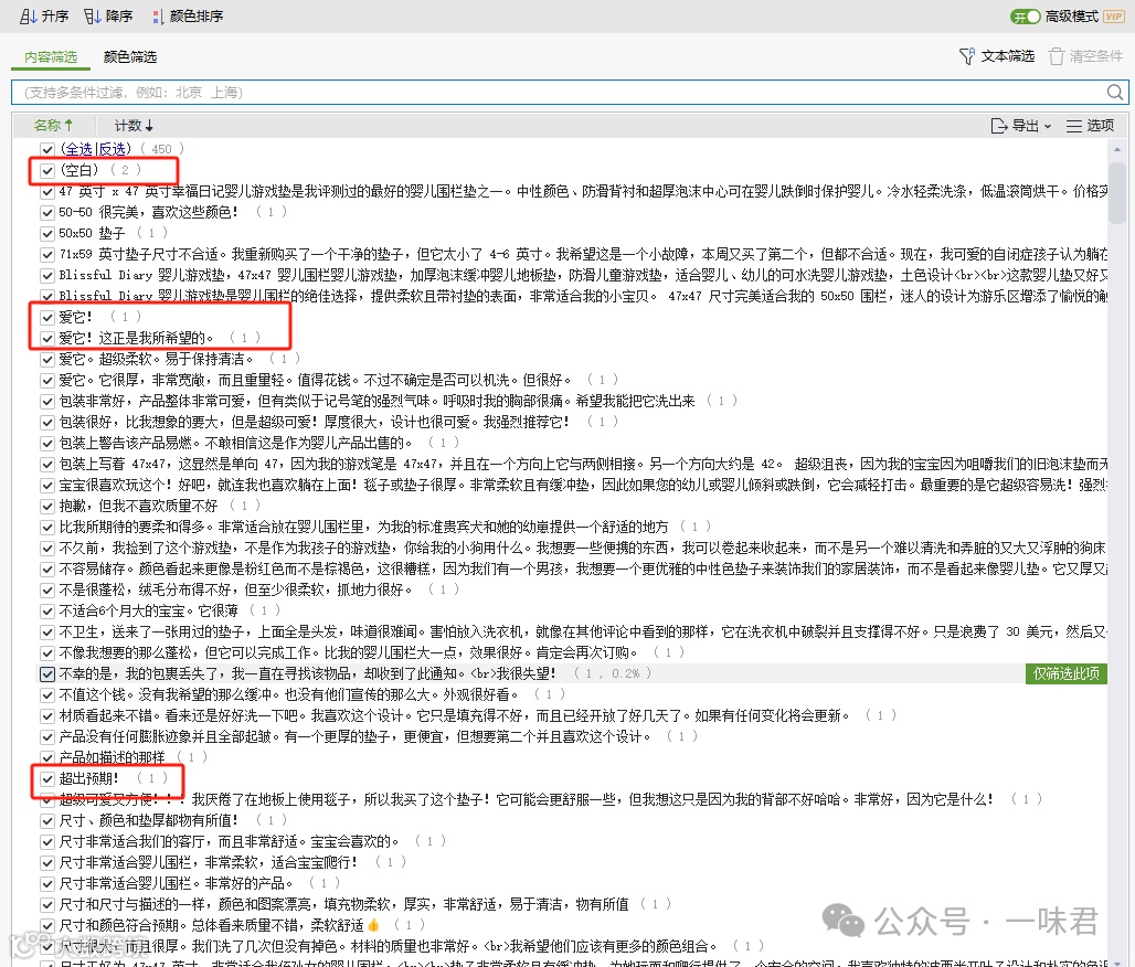2. 按提及频率排序,区分核心卖点与体验升级点;