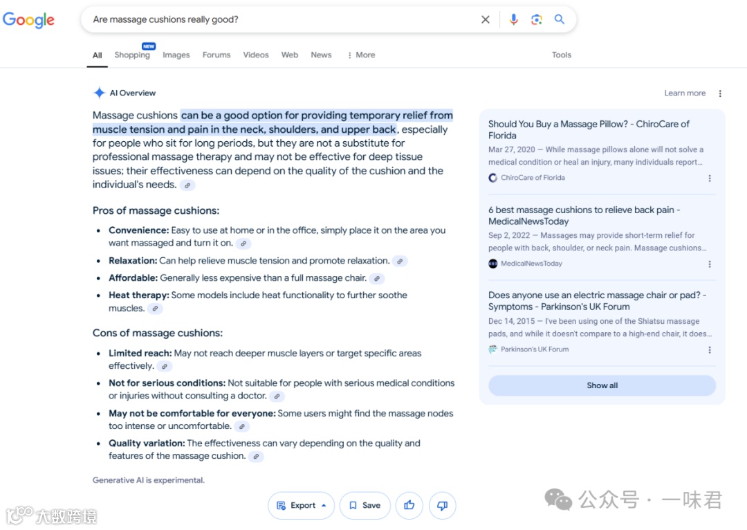 建议通过Google、相关论坛等外部搜索工具,验证分析结论的真实性。例如搜索“按摩垫真的好吗?”等用户疑问句,反向验证需求是否存在[k]。