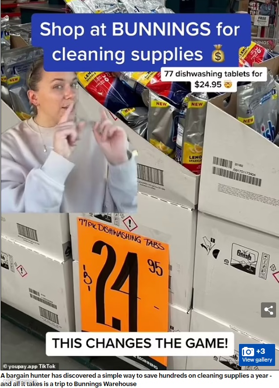 她在TikTok视频中表示:“我不久前在Bunnings购买了几包洗碗机片,它们太便宜了!还是优惠而不是普通的包装。”