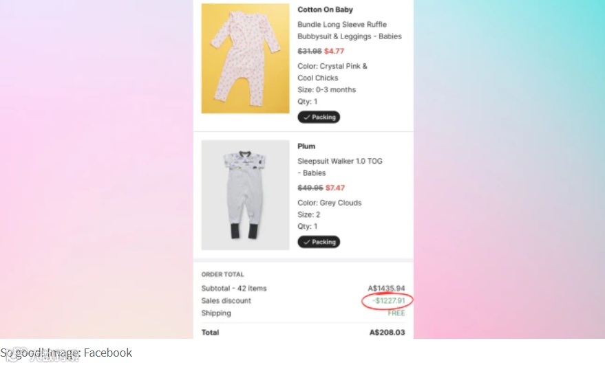 另一位妈妈说:“我刚为我的准宝宝省下了600多澳元的新生儿服装!🎉谢谢分享!!”