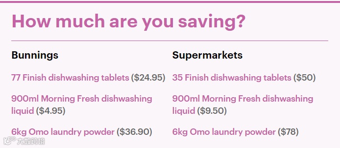 据《每日邮报》指出,6公斤的Omo洗衣粉在其他超市的售价为78澳元,900毫升的Morning Fresh洗碗液则需要9.50澳元。