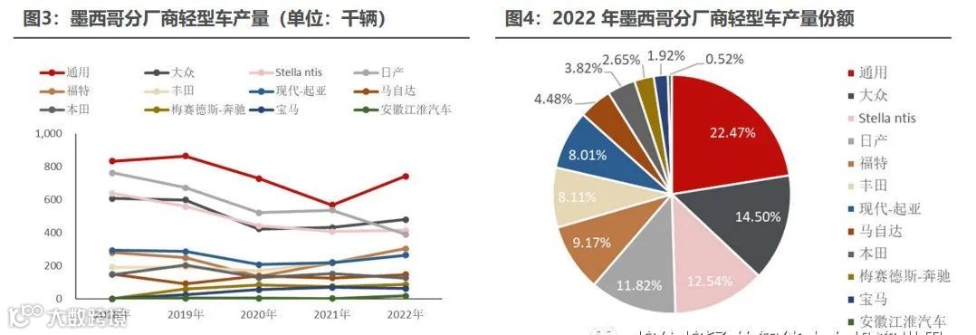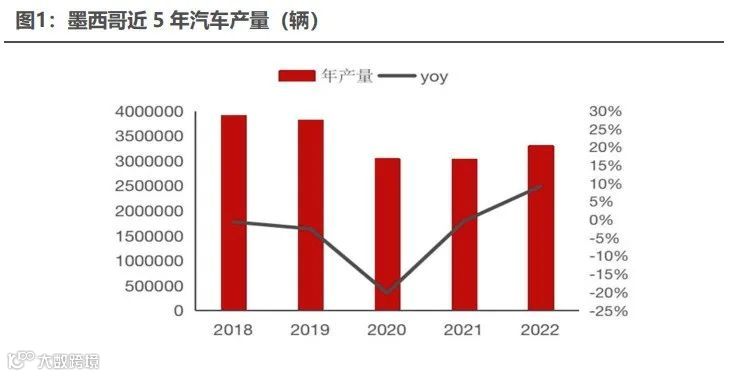 墨西哥目前整车年产量高达300万辆,为世界第七大整车生产国,拥有强大的国内市场。墨西哥是北美地区经济最发达的国家之一,本地劳动力低廉、地理位置优越,吸引了众多著名整车制造商在此进行生产制造。2022年墨西哥汽车产量330.8万辆,同比增长9.2%。