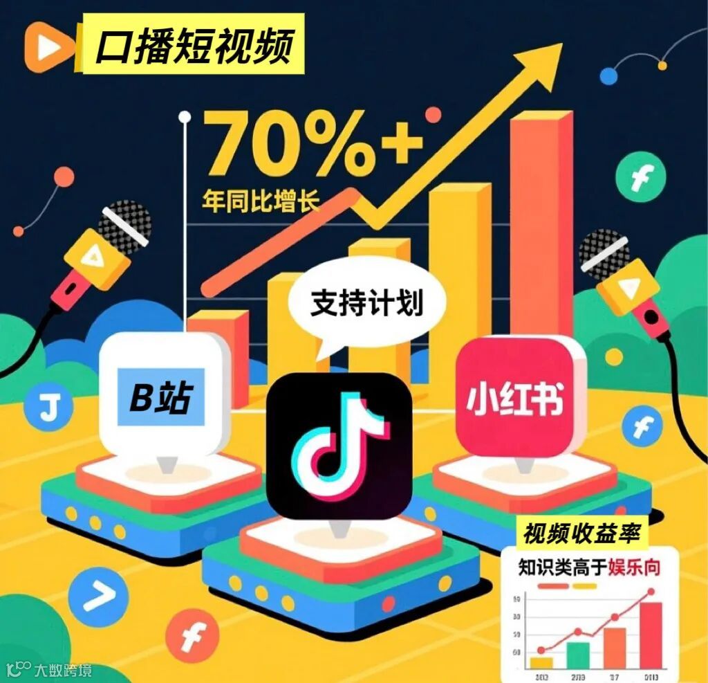 平台推荐:B站、抖音、小红书均公布相关扶持计划,知识类、观点类、教育类视频上加大分发权重,均有利于口播视频播放增长 -