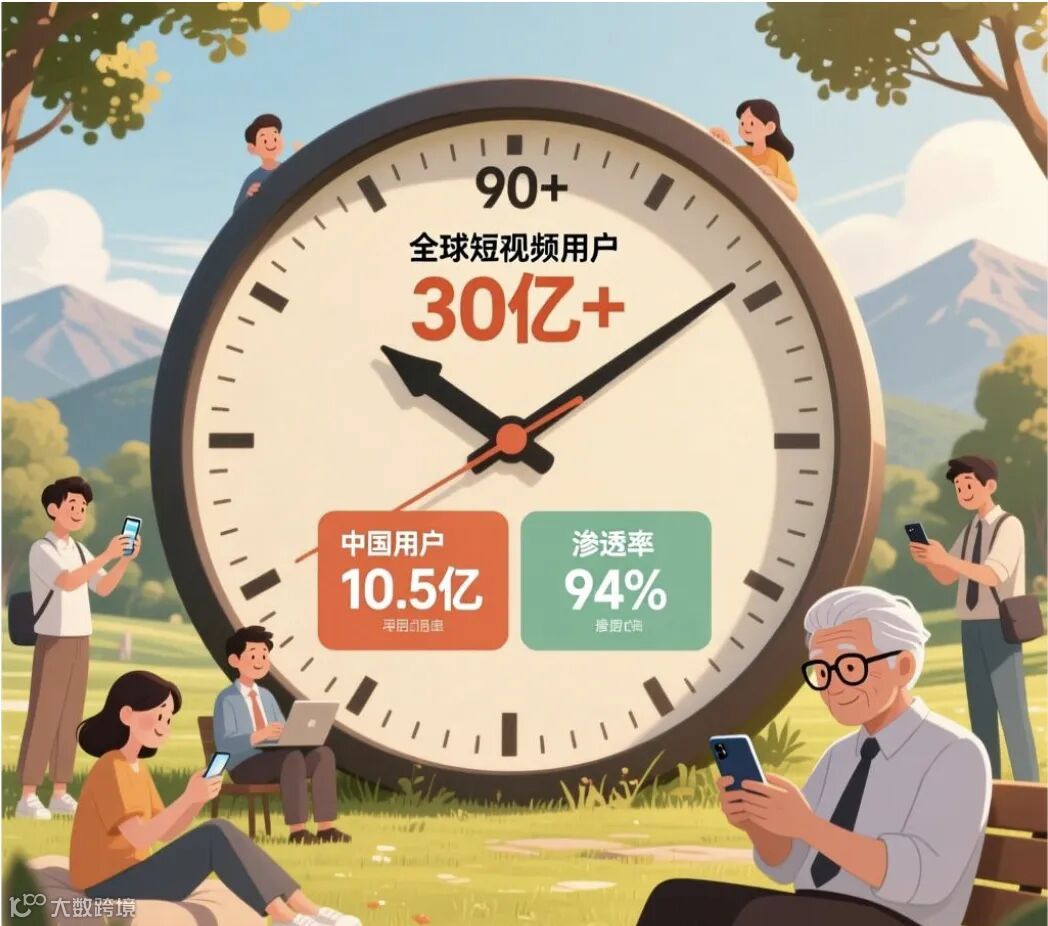 中国短视频用户:10.5 亿,渗透率 94% (QuestMobile 2024) -