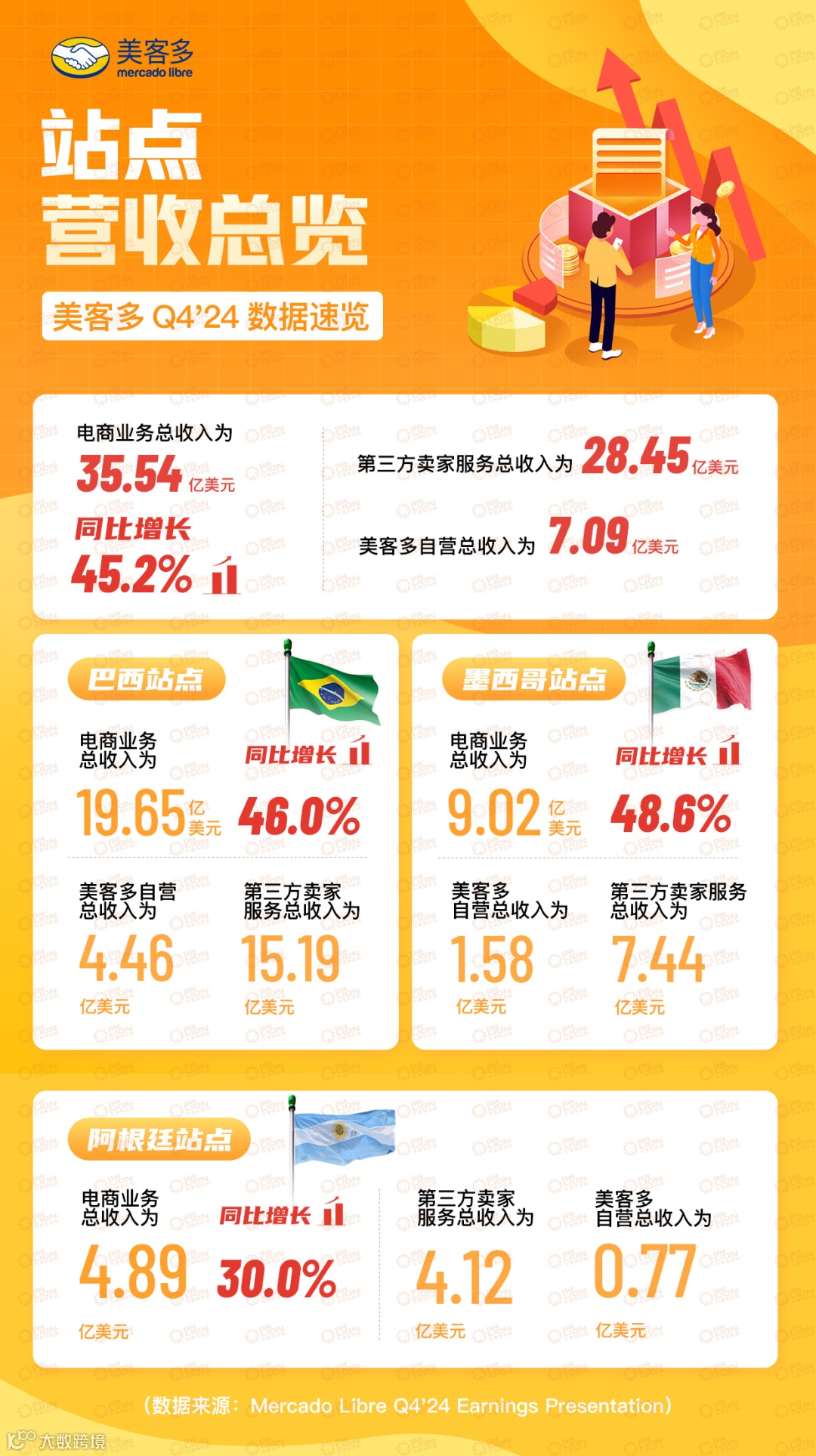 拉丁美洲领先的电子商务平台 Mercado Libre 于 2025 年 2 月 20 日发布了其2024年第四季度及全年财报亮点。