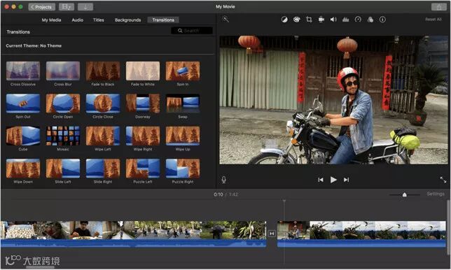 用户可以添加音乐、转场、修剪视频片段等等,还可以轻松添加主题、文字和标题。