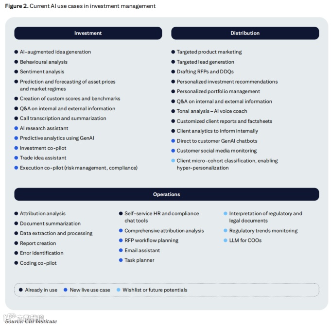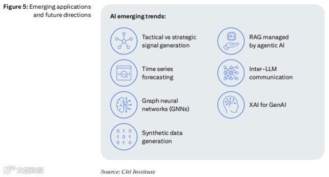 AI 在投资管理的应用将向 “长期策略”“复杂关系分析” 延伸,六大新兴方向已进入测试阶段:
