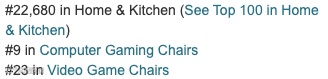 果不其然,这个产品虽然现在是在video game chairs里边,但是他曾经的细分品类是computer gaming chairs。