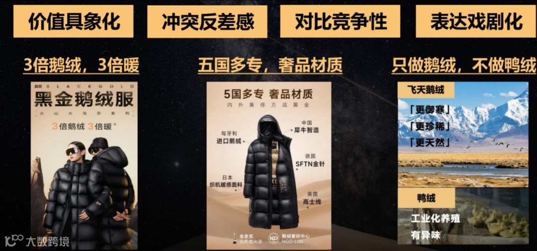 于是,高梵把战略锚定在:“高端鹅绒服”这个差异点上。