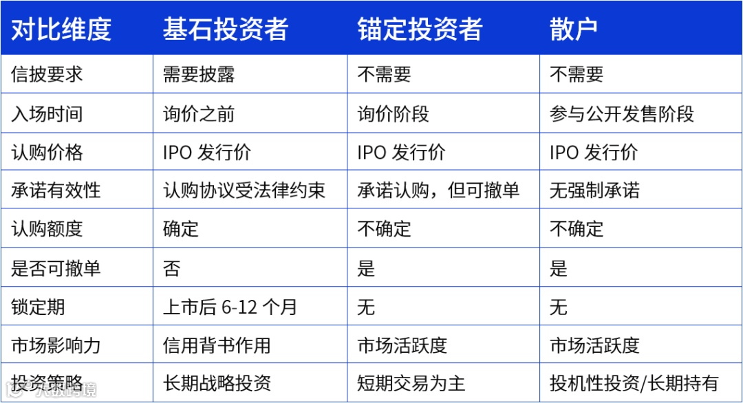 价格发现:在IPO定价前就已同意按最终发行价认购,表明他们更看重公司的长期价值而非短期价差。基石投资者的参与往往能帮助确立发行价格区间,成为价格的“锚点”。