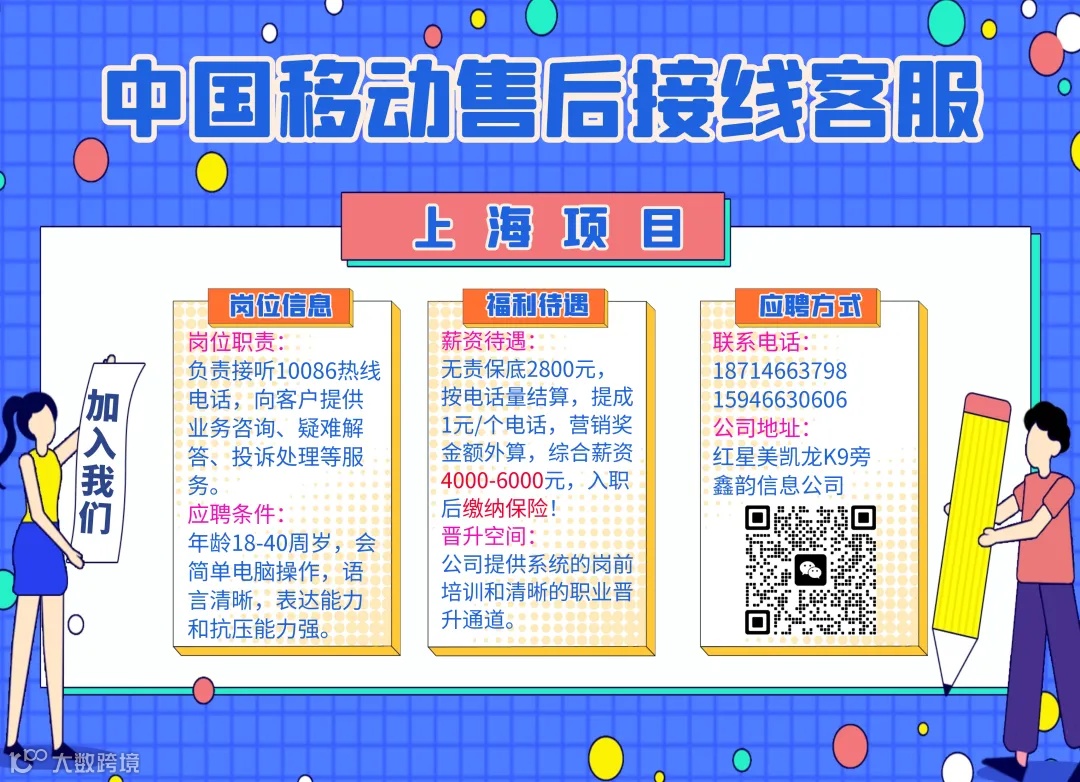 招聘班次:白班和晚班客服人员