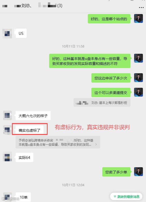 【10月11日,刘总找到我们咨询关于U盘容量描述不符停用】