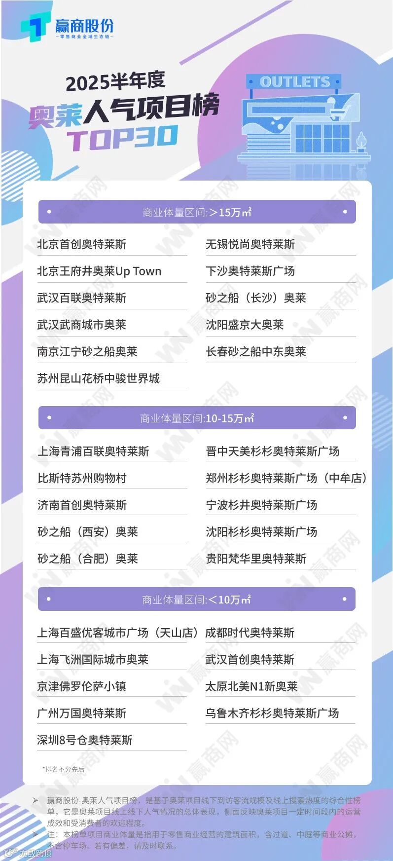 此为首发,《2025半年度奥莱人气项目榜TOP30》特征分析篇。