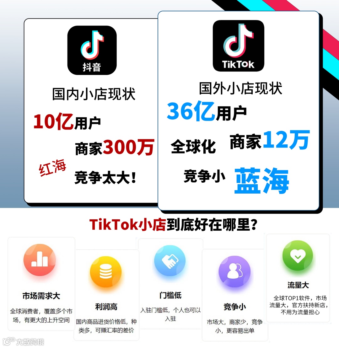 但它比国内抖音 “人多钱多”:全球用户超 21 亿,覆盖 150 多个国家,用户体量甩国内抖音一大截。不过电商这块还没完全起来,一年销售额才不到千亿,跟国内没法比 —— 这正是机会啊!