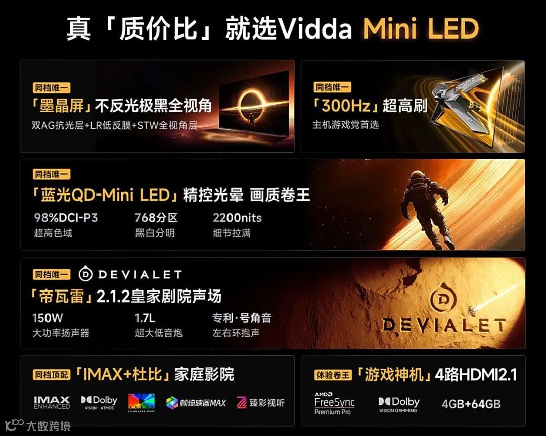 作为海信旗下针对年轻市场的子品牌,Vidda用“堆料式”配置打破“性价比=减配”的行业潜规则。其研发团队中,70%成员为90后工程师,更懂Z世代对高刷、低延迟、游戏适配的需求。这种“用户共研”模式,让Vidda电视在电竞圈与科技爱好者中快速积累口碑。
