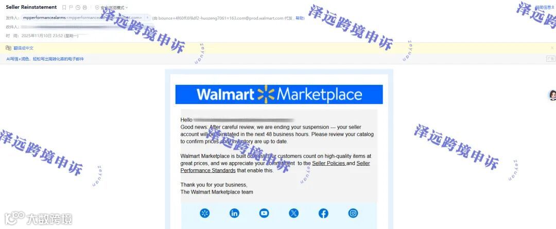 刚收到沃尔玛账户暂停通知,邮件写着“您的沃尔玛账户因退货地址无效已暂停”!