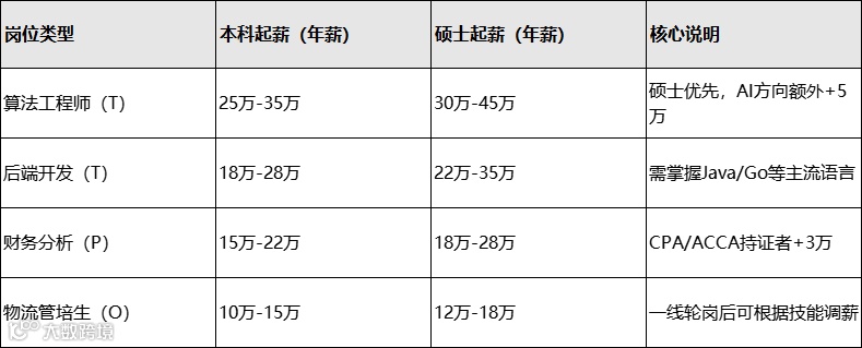 京东校招的核心逻辑是按需定价——技术岗(如算法、研发)因稀缺性溢价最高,职能岗(如HR、财务)次之,操作岗(如物流、客服)因可替代性较强起薪较低,但保留“技能补贴”空间。
