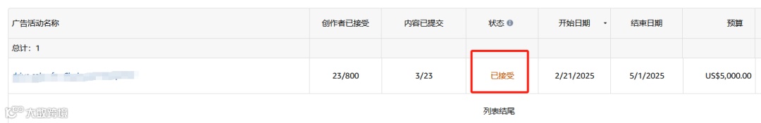 设置广告活动预算:最低5000$, 红人带货出单后的佣金会在这个预算里面扣掉。
