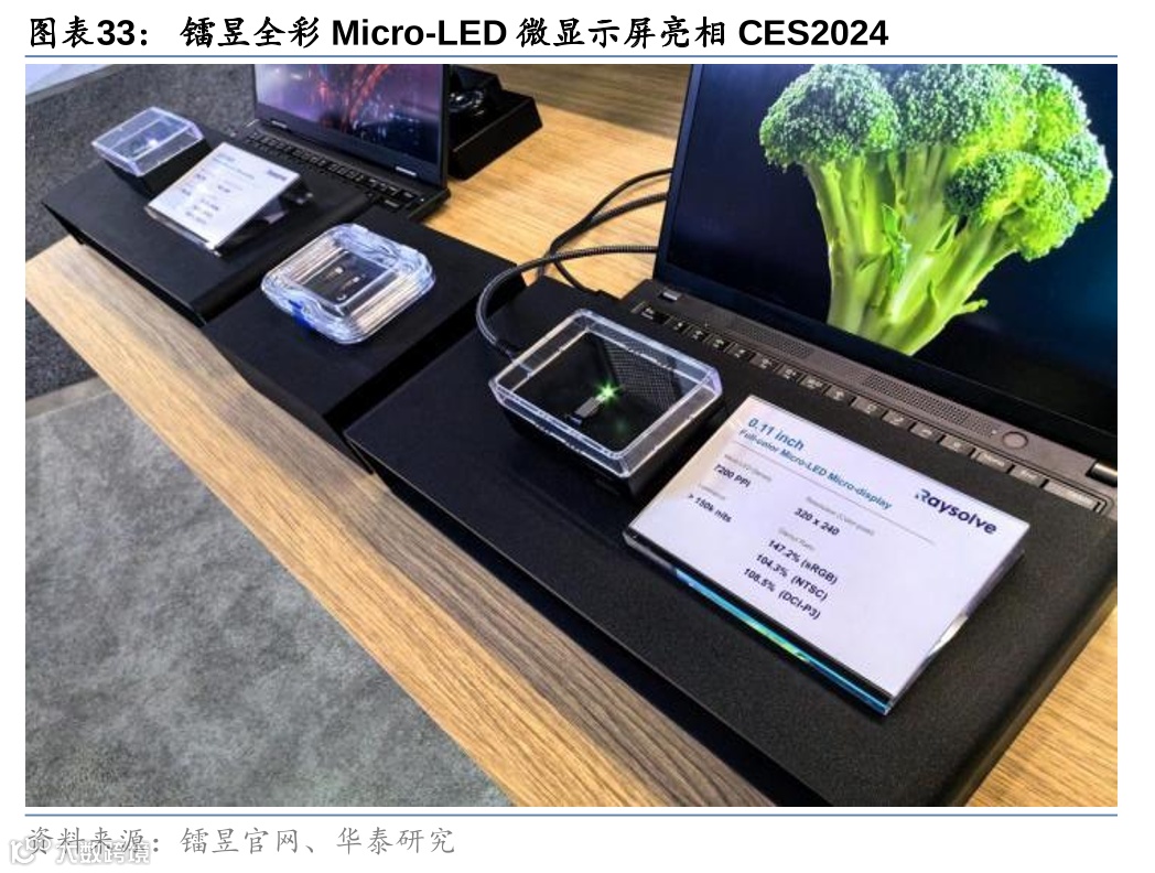 镭昱:公司完成Pre-A3轮战略融资,全面加速单片全彩芯片商业化进程。本轮融资由华映资本领投,三七互娱、米哈游跟投。本轮融资资金将用于加速研发选代、团队扩建及小规模量产,进一步巩固镭昱在单片全彩Micro-LED微显示领域的领先优势。镭昱半导体(Raysolve),成立于2019年2月3日,创始人兼CEO为庄永漳。公司核心团队源于香港科技大学电子系,拥有多年尖端光芯片设计与制造经验。公司致力于开发高性能、高量产性的全彩Micro-LED微显示屏,为AR眼镜打造理想的全彩微显示解决方案。作为业内最早实现AR级别单片全彩Micro-LED微显示芯片的先驱企业,镭昱积极推进前沿技术创新,并不断突破尺寸及像素密度纪录,为微显示领域带来颠覆性革新。