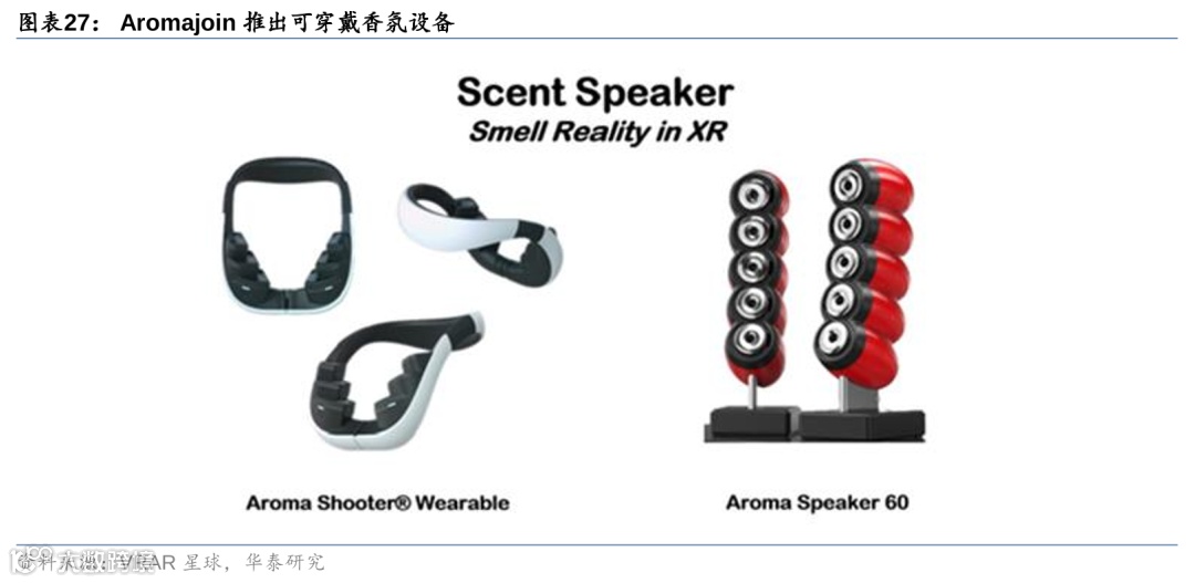 Aromajoin是一家位于京都的初创公司,专注于数字气味技术。在CES 2024上,Aromajoin推出可穿戴香氛设备“Aroma Shooter® Wearable”和“Aroma Speaker 60”。这种设备会同步释放出与VR场景相对应的气味,通过调动用户的嗅觉来增强沉浸感。基于该公司专有的“Aroma Shooter®”技术,这种设备可以在各种气味之间即时切换,没有任何延迟,也没有任何残留效果。这些尖端的气味控制系统和硬件设计受到33项专利技术的保护,可通过蓝牙与PC、智能手机、VR/AR设备等连接。2024年即将推出的新款Aroma Shooter® Wearable在2023年老款的基础上,做了以下升级: