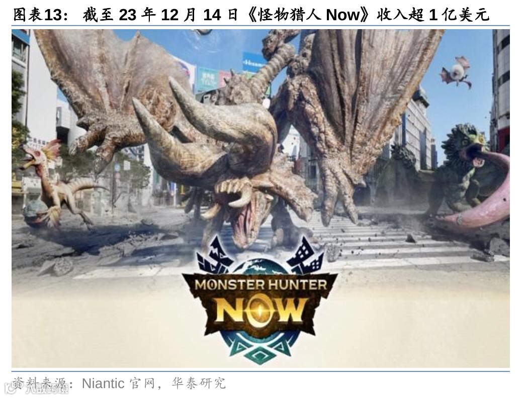 回顾2023年,Capcom、Guerrilla、Sanzaru Games、Ubisoft等知名开发商纷纷推出了多款3A级的VR大作,共同使玩家体验更上一层楼。据AppMagic,截至12月14日Niantic的AR手游新作《怪物猎人Now》也创造了出色的业绩,加上已扣除的商店佣金和税费收入超过了1亿美元,有望成为继《Pokémon GO》之后的又一款AR神作。此外,官宣预定在2024年发售的作品备受玩家期待,《Behemoths》是开发商Skydance Interactive即将于2024年推出的3A级VR游戏巨作,该作首次曝光于2022年的Meta Connect大会,随后又在2022年的TGA颁奖典礼上展示了震撼的预告片,赢得了现场观众的热烈反响。Skydance Interactive凭借《Archangel》获得了多项奖项的提名,后续又以高质量的《行尸走肉、圣徒与罪人》在业内站稳脚跟。