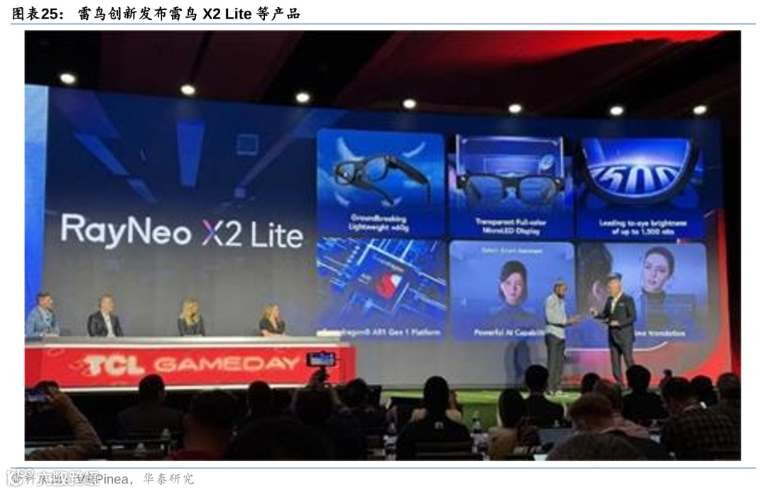 雷鸟创新在1月份的CES 2024展会展出雷鸟X2、雷鸟X2 Lite、雷鸟Air 2、JoyDock等产品。其中,雷鸟Air 2发布于去年10月,这是一款分体式AR眼镜,搭载了索尼新一代0.55英寸Micro OLED屏幕,支持120Hz高刷新率。此外,眼镜支持自定义屏幕色彩,整机重量只有76g。