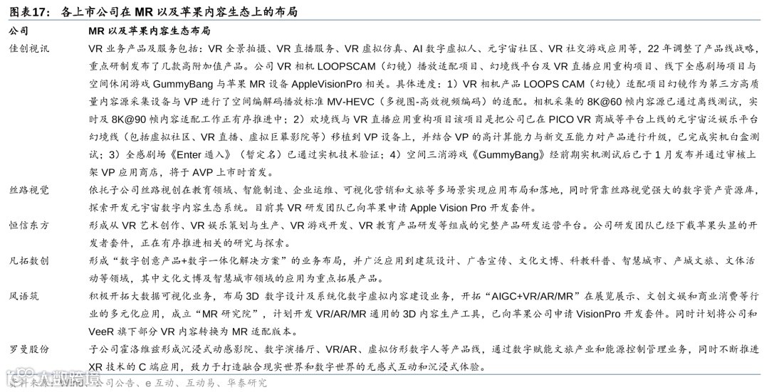 Vision Pro 内容生态受关注,众多上市公司纷纷入局