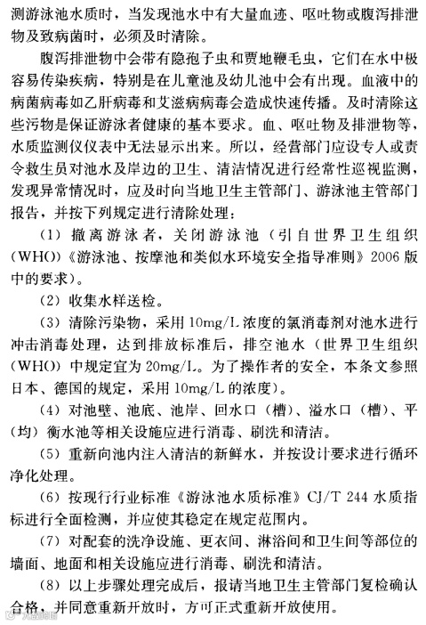 9.2.2 本条是对泳池及休闲设施经营者提出的要求。