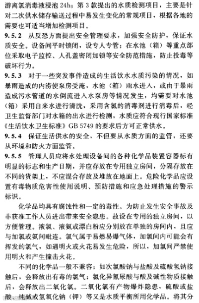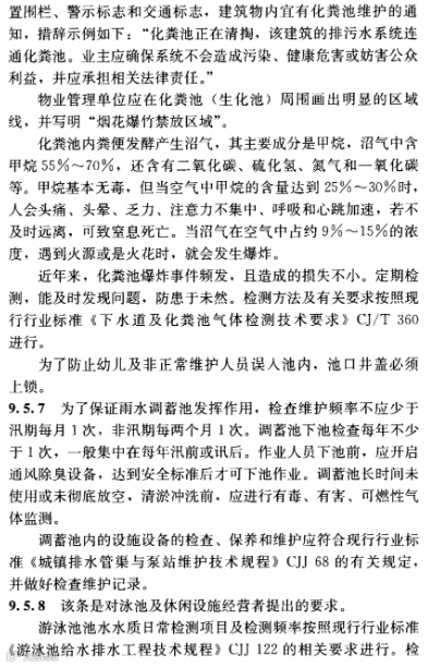 2.0.8建筑给水排水设施运行过程中使用和产生的易燃、易爆及有毒化学危险品应实施严格管理,防止人身伤害和灾害性事故的发生。