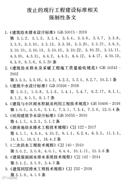 1.0.2建筑给水排水与节水工程的设计、施工、验收、运行和维护必须执行本规范。