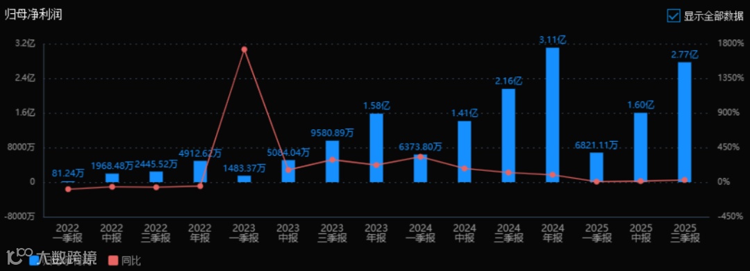 2025年三季度的归母净利润为2.77亿元,相较于2024年三季度的2.16亿元,增长了28.49%。