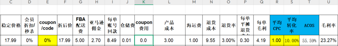 举个例子:利润值为2美金,CPC单次点击2美金,2/2=100%.按转化率10%计算,要20美金出一单,一单的利润才2美金,前期一定是亏的不要不要的,这种产品一般我们就不考虑了.