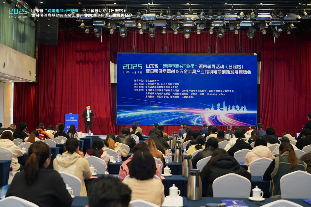 11月10日,由山东省商务厅指导,日照市商务局与山东外贸职业学院联合主办的2025年山东省“跨境电商+产业带”巡回辅导活动(日照站)暨日照健身器材&五金工具产业跨境电商创新发展现场会在日照市成功举办。本次活动旨在系统性推动本地健身器材、五金工具两大优势产业带与跨境电商深度融合,助力企业开拓国际市场。作为本年度全省巡回辅导的第六站暨收官站,会议汇聚政府部门、电商平台、服务机构、高校及产业带企业代表等200余人。