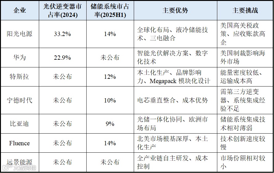 阳光电源在光伏逆变器和储能系统两大领域面临不同竞争对手的差异化竞争。