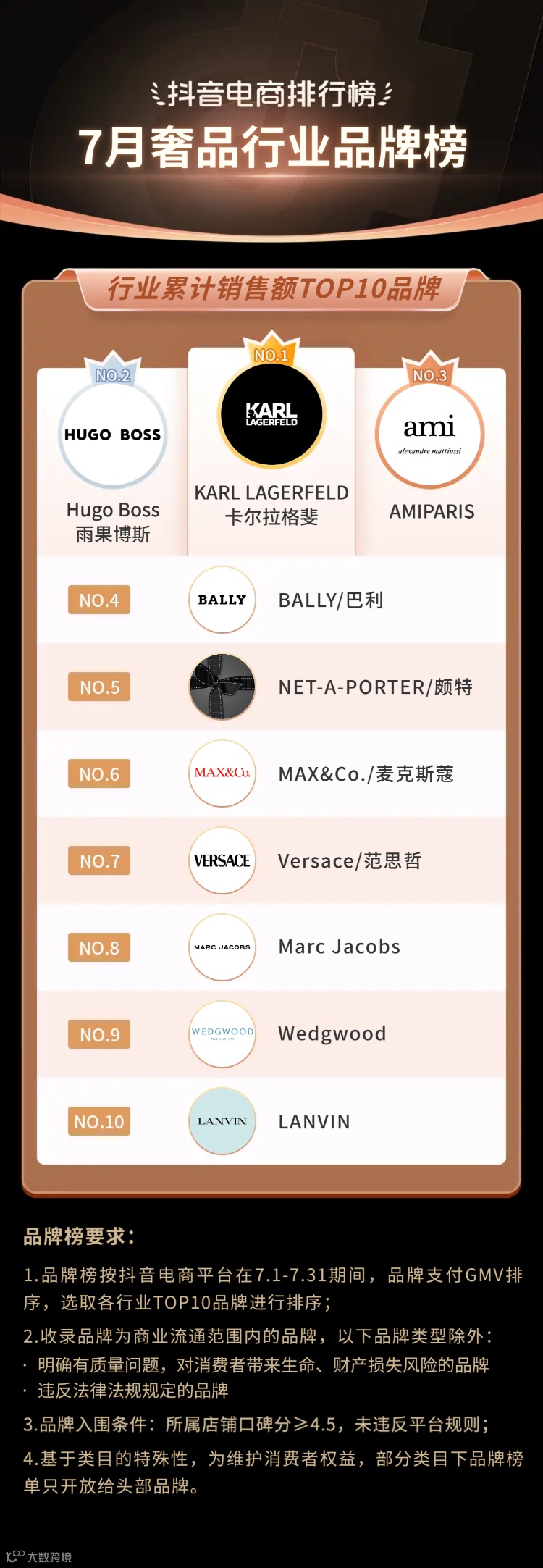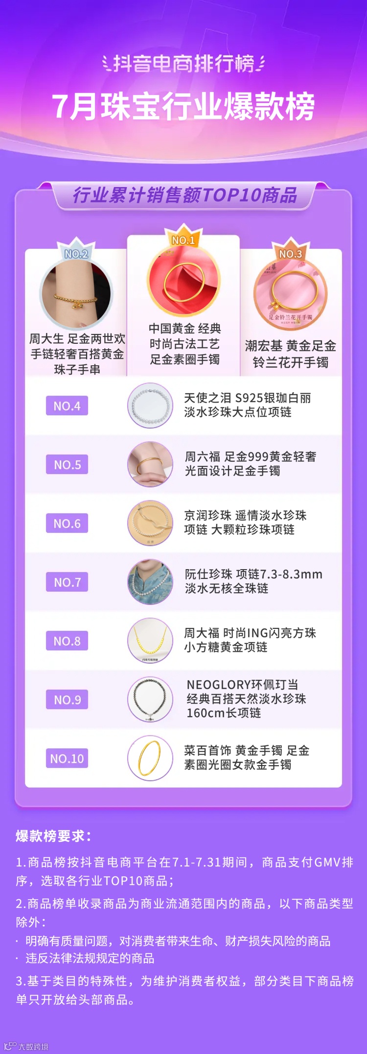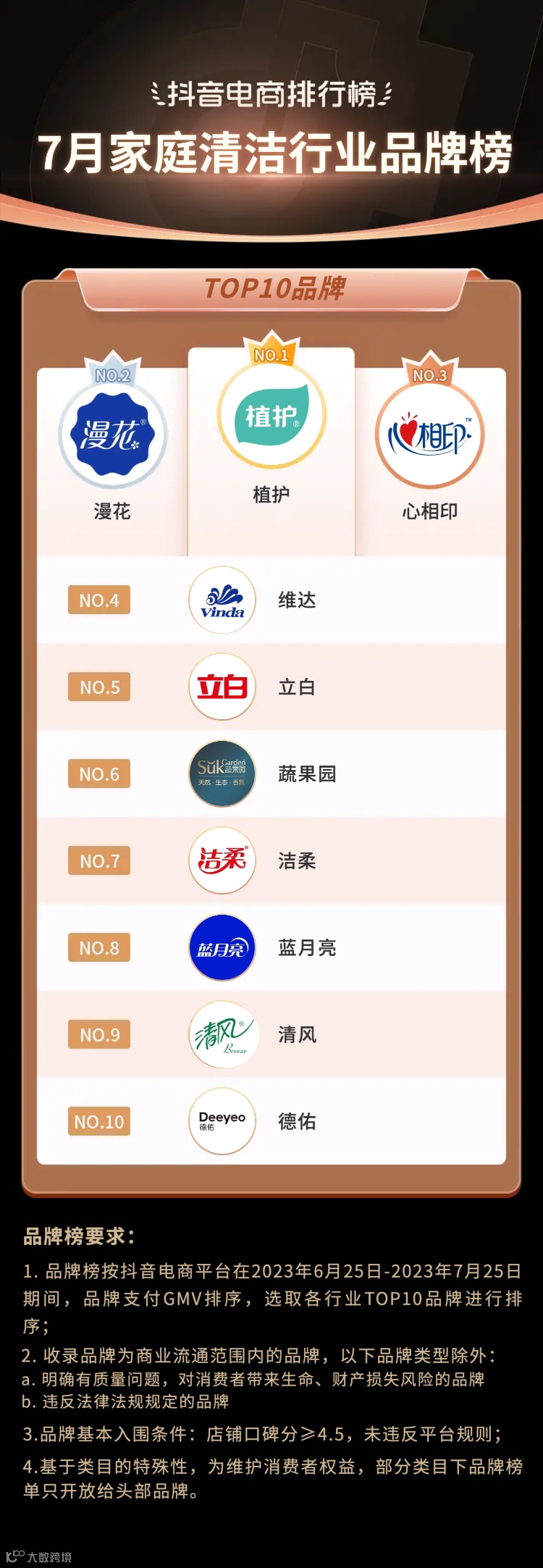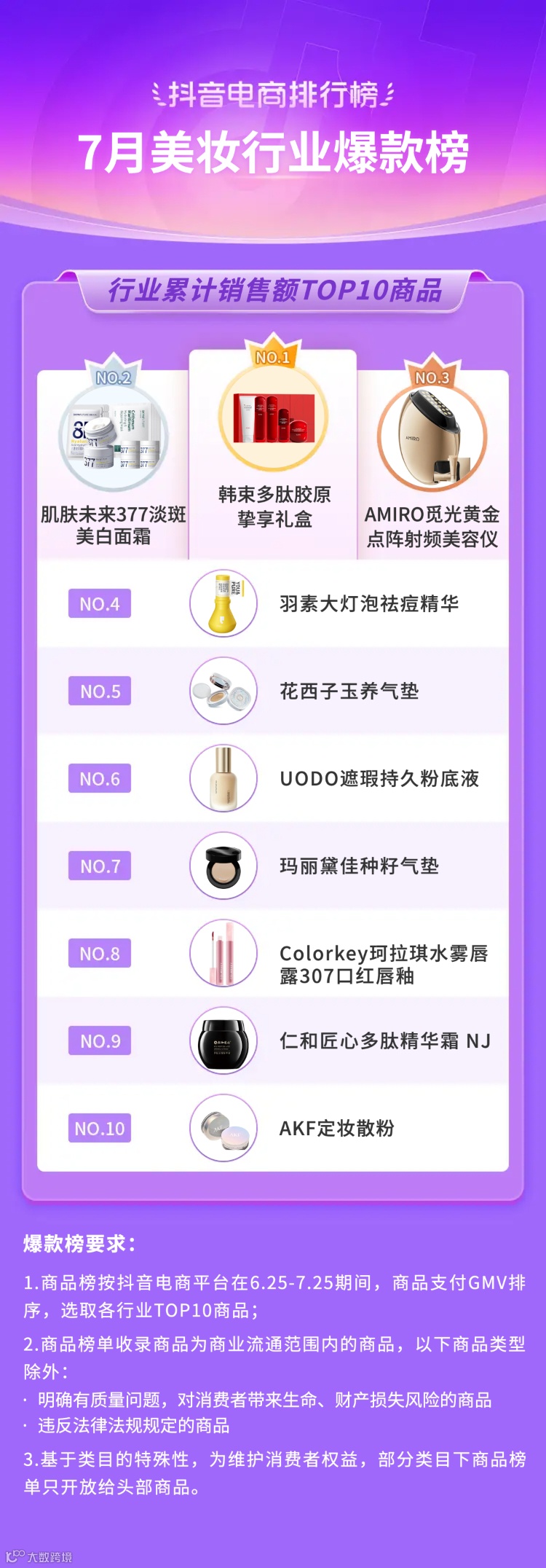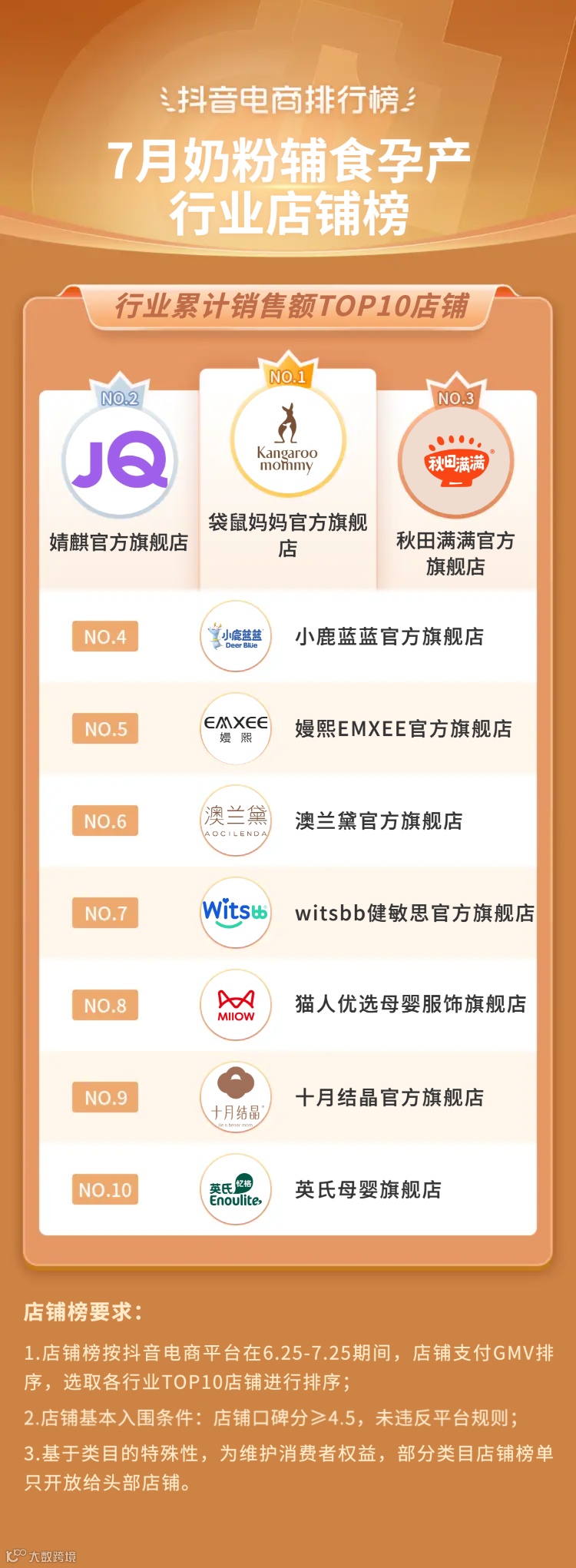 本月,克劳锐继续联合抖音电商发布7月抖音电商各维度榜单,本期榜单相比5月加入了与商家的对话,帮助大家更好地理解抖音电商生态的发展趋势。 同样的,本期7月榜单克劳锐根据品类总GMV、用户需求度以及品类购物频次等方面因素,将榜单按照主要消费品类、成长消费品类、趋势增长品类作了三类划分,并将对每个品类做具体解读。总结7月榜单我们发现,部分主要消费品类有了较大变动,黑马品牌持续涌现,譬如美妆行业下肌肤未来跃居品牌榜第三名,女装行业下爱依服跃居品牌榜第二名,运动户外品类下耐克跃居品牌榜第二名。此外,其余主要消费品类也有些许变动,新品牌上榜现象频发。由此证明,抖音电商生态各品类还存在增长空间,商家需要结合自身产品特点进行投流、达人等资源匹配,成功在垂类赛道打出声量与销量。从爆款产品上看,7月出现了反季产品的销售热潮,羽绒服占据了7月女装行业爆款榜的大部分席位。此外,健腹轮产品也占据运动户外爆款榜大部分席位。整体上看,大部分爆款榜依旧呈现出消费的随机性。本月通过与商家的对话,克劳锐发现不少商家坚定认为抖音电商生态还存在一定机遇,譬如黑马品牌小鹿蓝蓝的相关负责人就认为,抖音电商已经成为母婴市场正增长的重要渠道,而消费者也不再迷信所谓的大品牌、进口货,国货的力量在崛起。总而言之,极致的性价比是当前用户购物消费的核心,产品力、运营力与内容力的结合能够帮助商家取得更好的业绩。商家需注重用户体验,通过个性化推荐、精准定位等手段,为用户提供个性化的购物体验,提高用户的购买意愿和满意度。注:①主要消费品类下辖美妆、食品饮料、女装、男装、运动户外、亲子服饰、奶粉辅食孕产、母婴用品、个护、纸品家清、清洁工具、酒水②成长消费品类下辖3C数码、玩具潮玩、图书教育、宠物行业、珠宝行业、奢侈品行业、家电行业、家居日用③趋势增长品类下辖跨境、家具家装、滋补保健、汽车、鲜花园艺主要消费品类本月主要消费品类下各垂类有了较大变动。典型如女装行业榜单产生了较大变动,爱依服、S·DEER、UR、CO CO ZONE、雅鹿等多家品牌上榜;美妆行业也有了极大变化,肌肤未来、薇诺娜、柏瑞美、毛戈平、欧诗漫、HBN成为新上榜品牌。其余品类也均有品牌变动,新上榜品牌继续涌现。在对话中,不少商家表示在抖音电商生态内,要将兴趣和需求作为最好的出发点,内容作为最好的媒介,最终促成品牌价值和销售转化的双重提升。下面一起来看7月抖音电商主要消费品类各榜单详情——