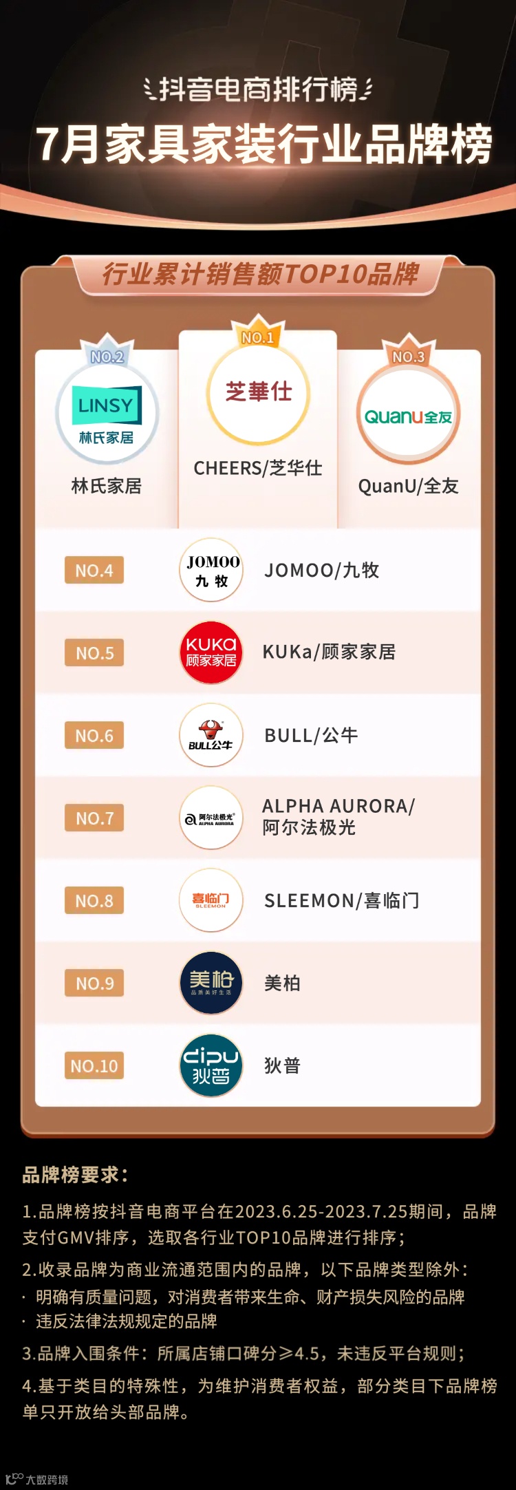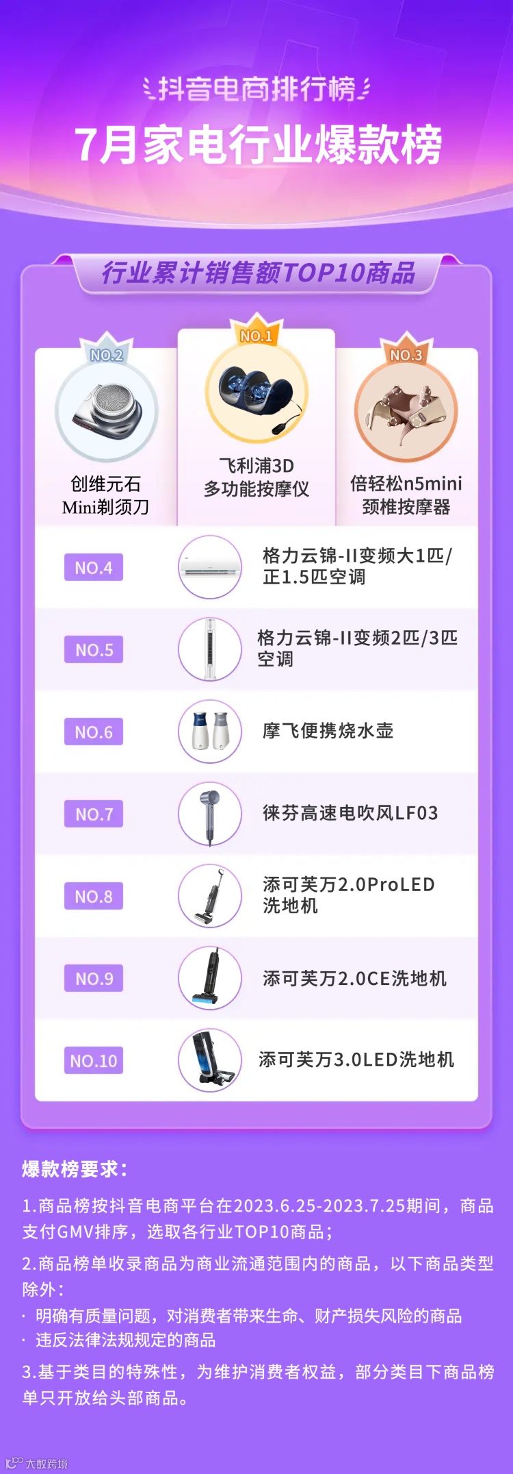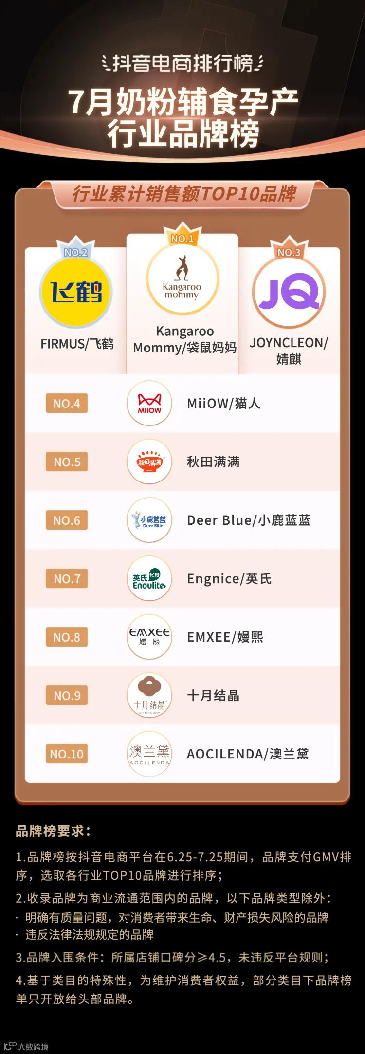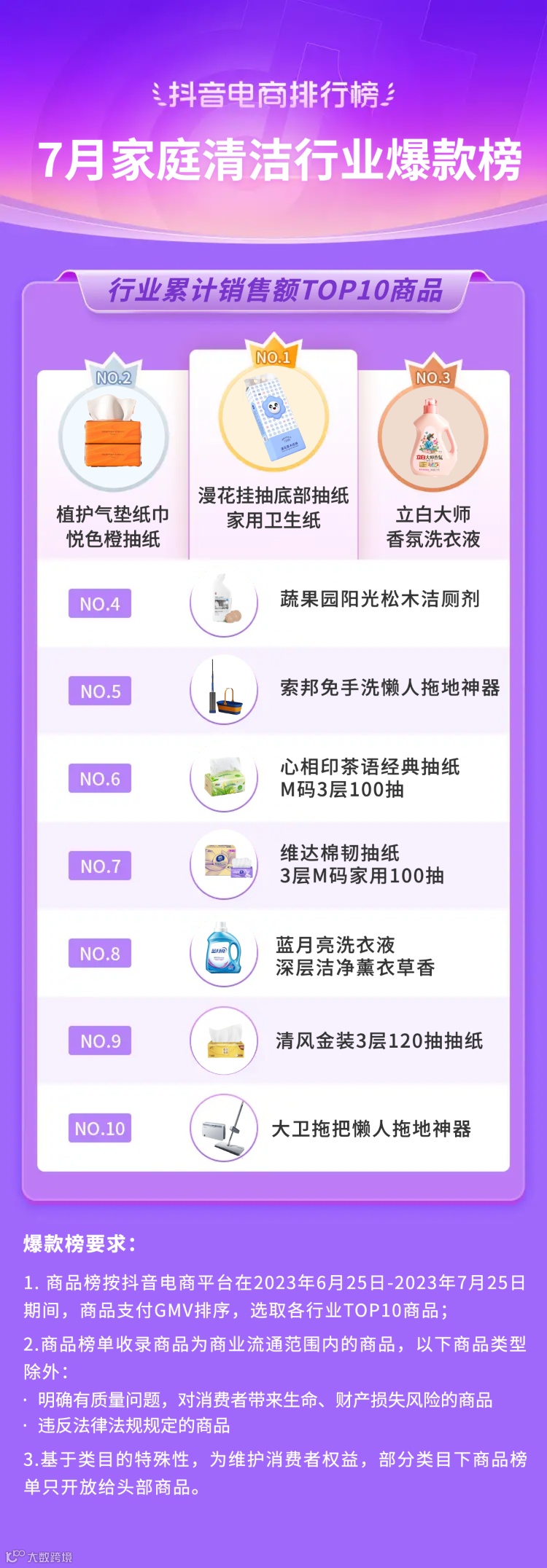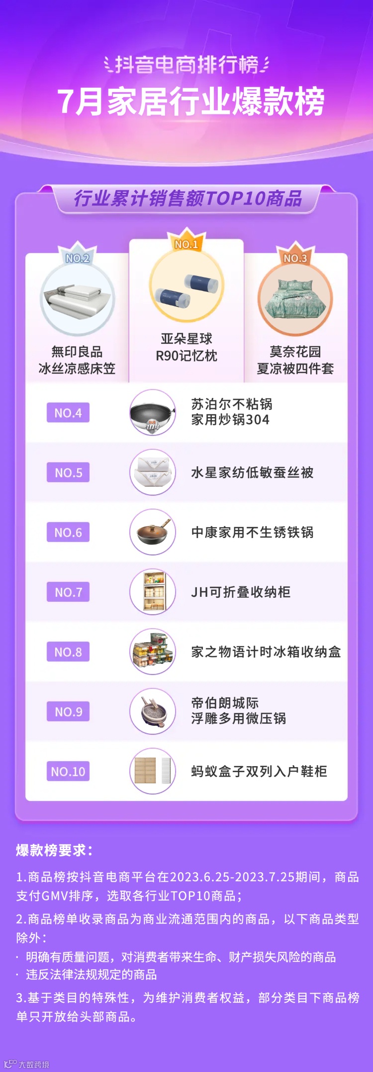 本月,克劳锐继续联合抖音电商发布7月抖音电商各维度榜单,本期榜单相比5月加入了与商家的对话,帮助大家更好地理解抖音电商生态的发展趋势。 同样的,本期7月榜单克劳锐根据品类总GMV、用户需求度以及品类购物频次等方面因素,将榜单按照主要消费品类、成长消费品类、趋势增长品类作了三类划分,并将对每个品类做具体解读。总结7月榜单我们发现,部分主要消费品类有了较大变动,黑马品牌持续涌现,譬如美妆行业下肌肤未来跃居品牌榜第三名,女装行业下爱依服跃居品牌榜第二名,运动户外品类下耐克跃居品牌榜第二名。此外,其余主要消费品类也有些许变动,新品牌上榜现象频发。由此证明,抖音电商生态各品类还存在增长空间,商家需要结合自身产品特点进行投流、达人等资源匹配,成功在垂类赛道打出声量与销量。从爆款产品上看,7月出现了反季产品的销售热潮,羽绒服占据了7月女装行业爆款榜的大部分席位。此外,健腹轮产品也占据运动户外爆款榜大部分席位。整体上看,大部分爆款榜依旧呈现出消费的随机性。本月通过与商家的对话,克劳锐发现不少商家坚定认为抖音电商生态还存在一定机遇,譬如黑马品牌小鹿蓝蓝的相关负责人就认为,抖音电商已经成为母婴市场正增长的重要渠道,而消费者也不再迷信所谓的大品牌、进口货,国货的力量在崛起。总而言之,极致的性价比是当前用户购物消费的核心,产品力、运营力与内容力的结合能够帮助商家取得更好的业绩。商家需注重用户体验,通过个性化推荐、精准定位等手段,为用户提供个性化的购物体验,提高用户的购买意愿和满意度。注:①主要消费品类下辖美妆、食品饮料、女装、男装、运动户外、亲子服饰、奶粉辅食孕产、母婴用品、个护、纸品家清、清洁工具、酒水②成长消费品类下辖3C数码、玩具潮玩、图书教育、宠物行业、珠宝行业、奢侈品行业、家电行业、家居日用③趋势增长品类下辖跨境、家具家装、滋补保健、汽车、鲜花园艺主要消费品类本月主要消费品类下各垂类有了较大变动。典型如女装行业榜单产生了较大变动,爱依服、S·DEER、UR、CO CO ZONE、雅鹿等多家品牌上榜;美妆行业也有了极大变化,肌肤未来、薇诺娜、柏瑞美、毛戈平、欧诗漫、HBN成为新上榜品牌。其余品类也均有品牌变动,新上榜品牌继续涌现。在对话中,不少商家表示在抖音电商生态内,要将兴趣和需求作为最好的出发点,内容作为最好的媒介,最终促成品牌价值和销售转化的双重提升。下面一起来看7月抖音电商主要消费品类各榜单详情——
