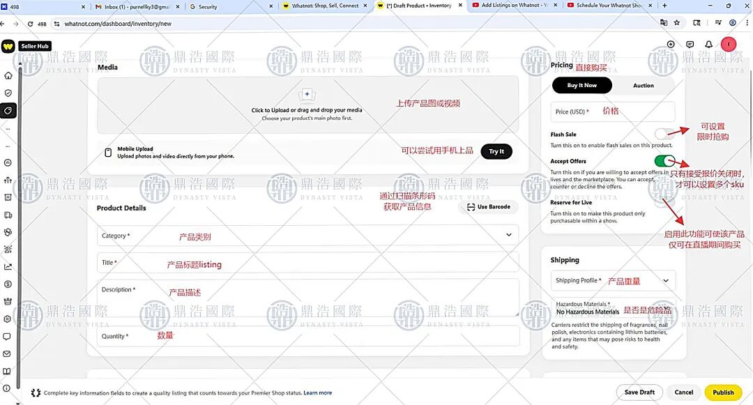 1、您是否参加了 whatnot 的提前付款卖家计划,以及您所在的位置。