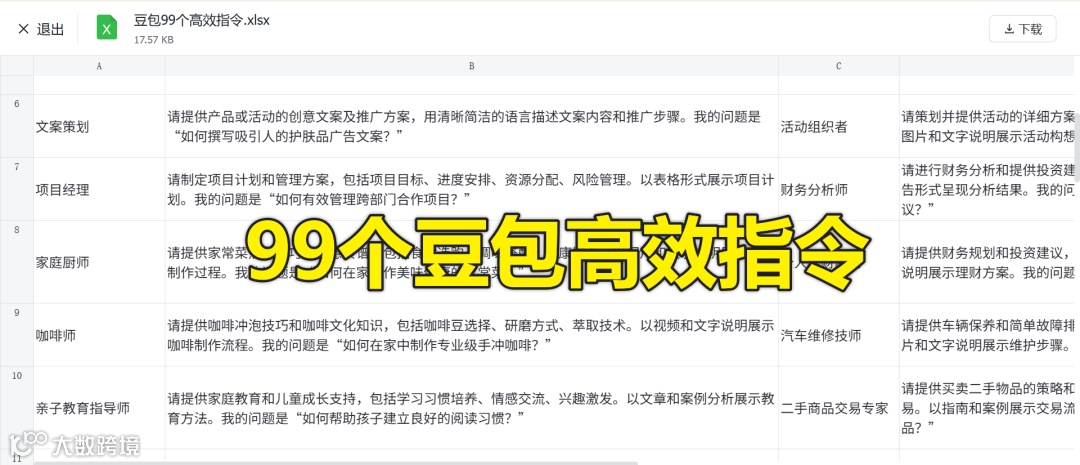 📝文末附《豆包99个高效指令》