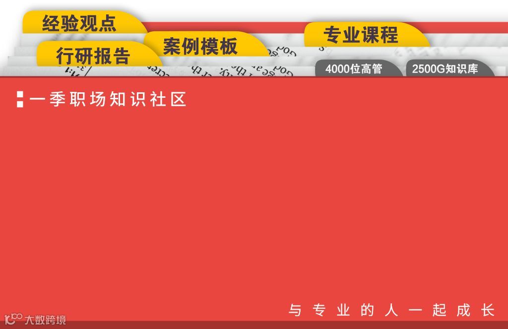 一季职场知识社区由教育行业市场人一季君和戴哥发起,已归纳和整理921个行业、超2500G的行研报告、案例模板及技能工具等各类职场学习资料;4000位来自BAT、京东、浪潮等知名公司的中高管已来到一季社区,在这里共享学习资料,开设自己的专业课程传授经验、交流观点,对接人脉资源。在职场,专业能力是资产,人脉是底气。专业深度决定职业高度,与专业的人一起成长。我们在这里等着你。点击了解社区