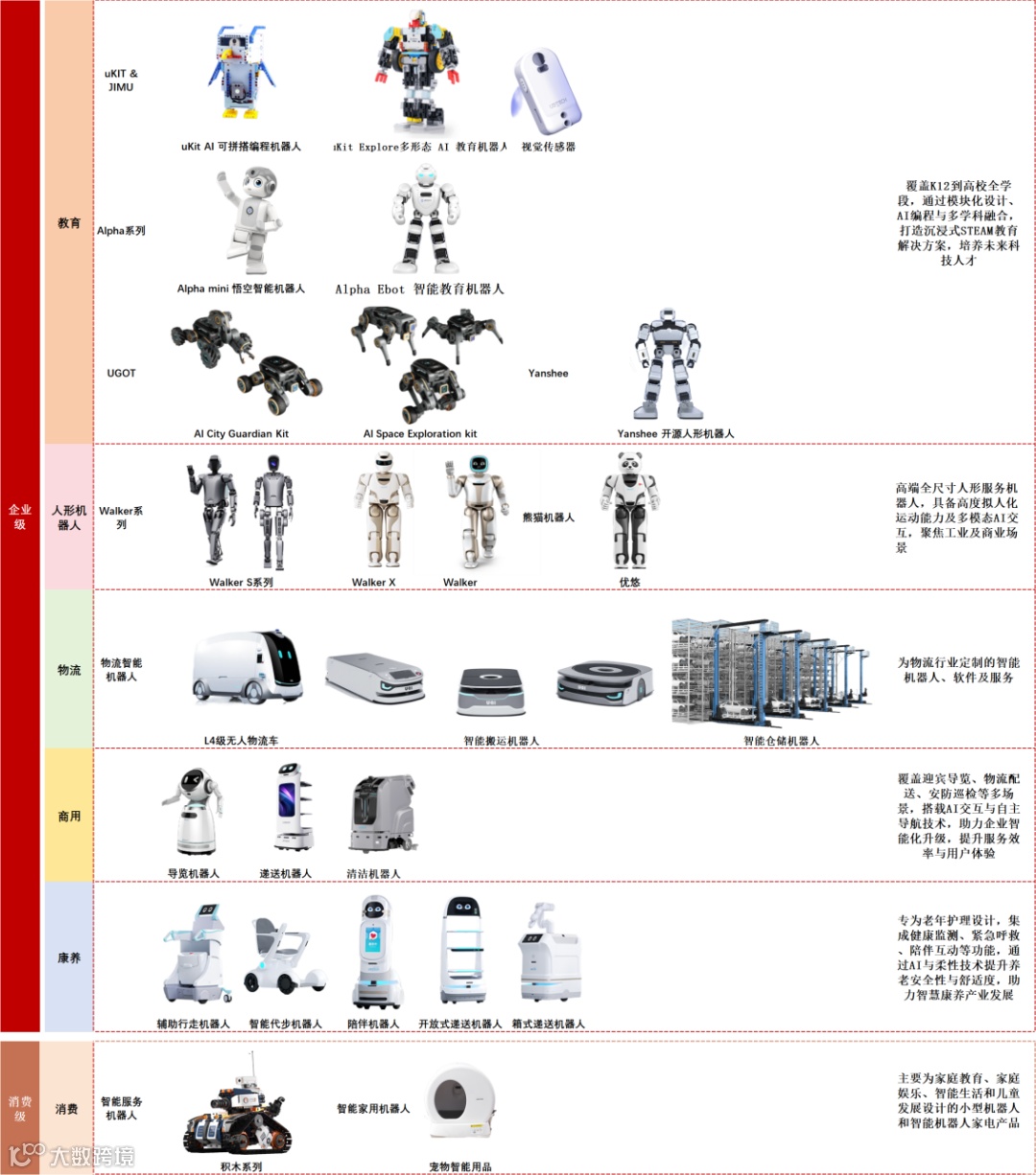 产品结构:按照客户群体,公司产品分为企业级与消费级两大类。企业级产品覆盖教育、工业、商用服务、康养护理四大领域,包括人形机器人(如Walker系列)、智能搬运机器人、导航机器人、清洁机器人等、辅助行走机器人、陪伴机器人等。